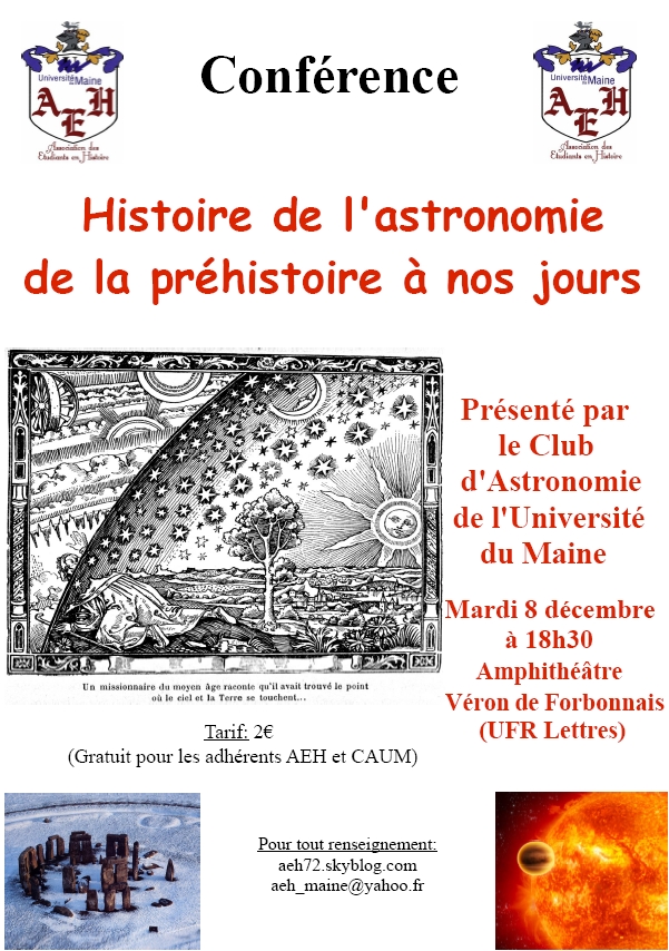 Elle aura lieu à l'amphithéâtre Véron de Forbonnais à l'Université du Maine. Cette conférence (gérée par l'AEH) est payante et le tarif est de 2 euros par personne